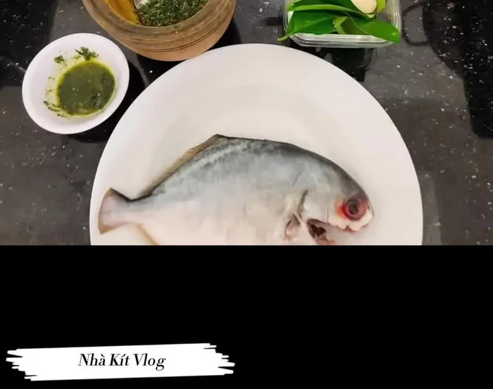 - Chuẩn bị cá chim đã làm sạch. Rửa sạch lá chanh và thái nhỏ.