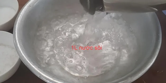 - 1L nước + 4 muỗng canh muối + 2 muỗng canh đường (50g). Trộn đều cho tan.